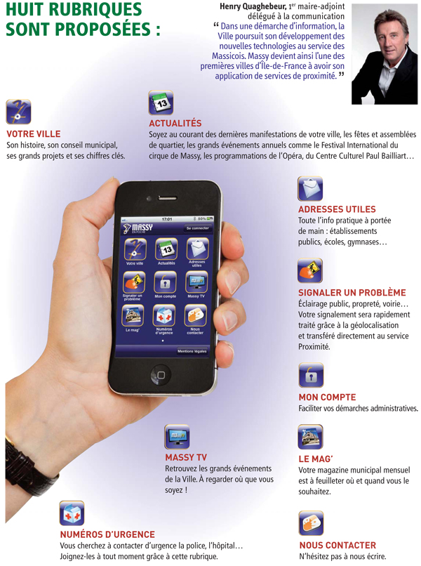 L'application de la ville de Massy pour iPhone est disponible sur l'. Il faudra attendre le 16 septembre pour la version Androïd.