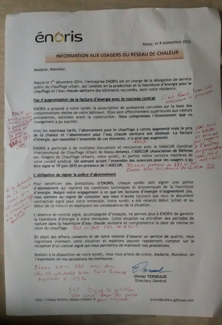 Re: signez la pétition contre l'augmentation chauffageVoici la reponse que j'ai faite sur le tract Enoris et affiché dans notre hall.