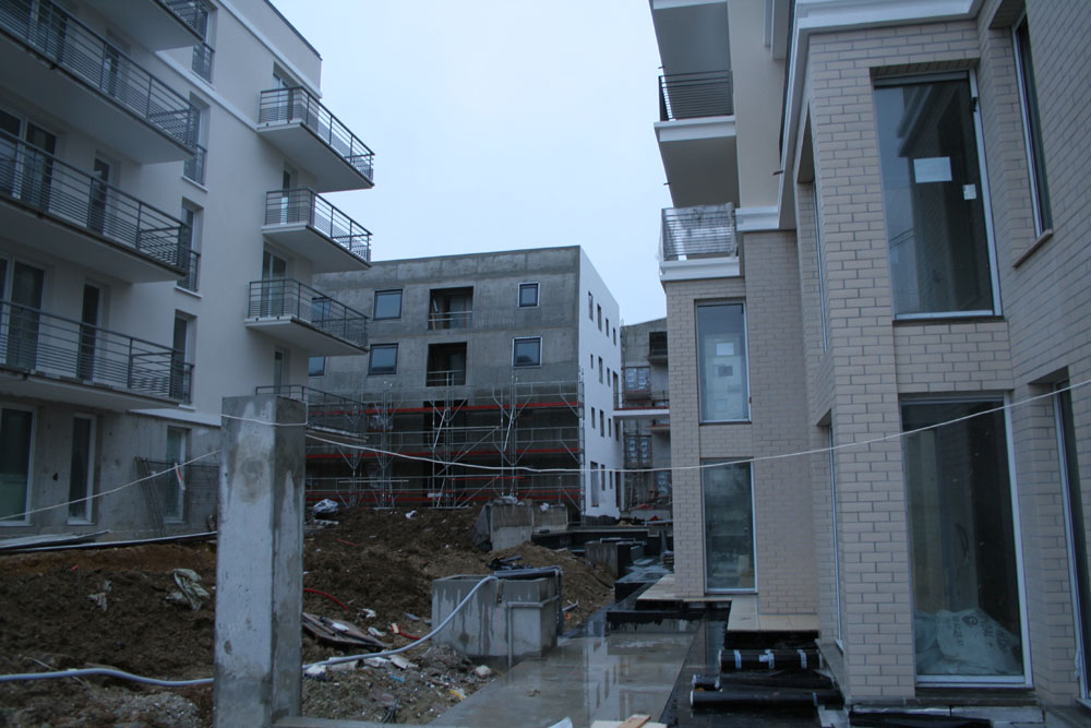 Je suis passée sur le chantier, dans la semaine ... ça avance bien : les carrelages sont finis (il me semble) dans les étages 5/4/3 ; les faïences sont en cours, je n'ai vu nulle part du parquet ; les peintures (le voile au pistolet) est fait jusqu'au 3 il me semble , l'ascenseur est en cours de pose ; toujours pas de WC, ni de lavabo et ni de pose d'évier.