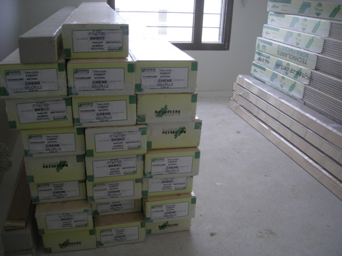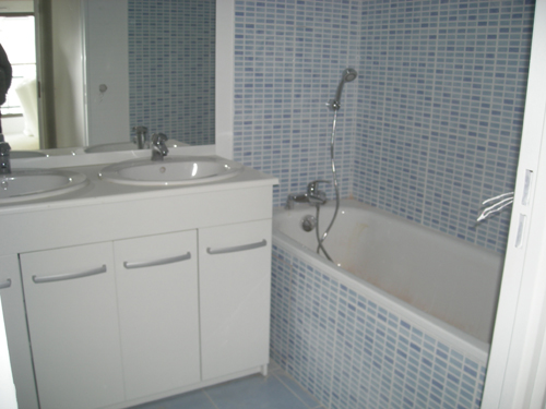 de mémoire, les photos ont été prises dans l'appart. D51 ... nous (mon époux et moi) avons des goûts proches de ses propriétaires : nous avons choisi le même type de faience de salle de bain (en gris chez nous). Je déduis, vu l'état du D51 (ouvert) et du nôtre (fermé), que le parquet est peut-être posé au 4ième . En tout cas, cette semaine ils ont bien bossé : les verres sécurité ont aussi été posés sur les balcons. Pour l'AG, c'est vrai que pour le moment c'est un peu tristounet. Hier sur le chantier j'ai accroché des "flyer" plastifiés avec l'adresse du forum ... ce serait bien que nous puissions être plus nombreux. A plus tard, P.L.