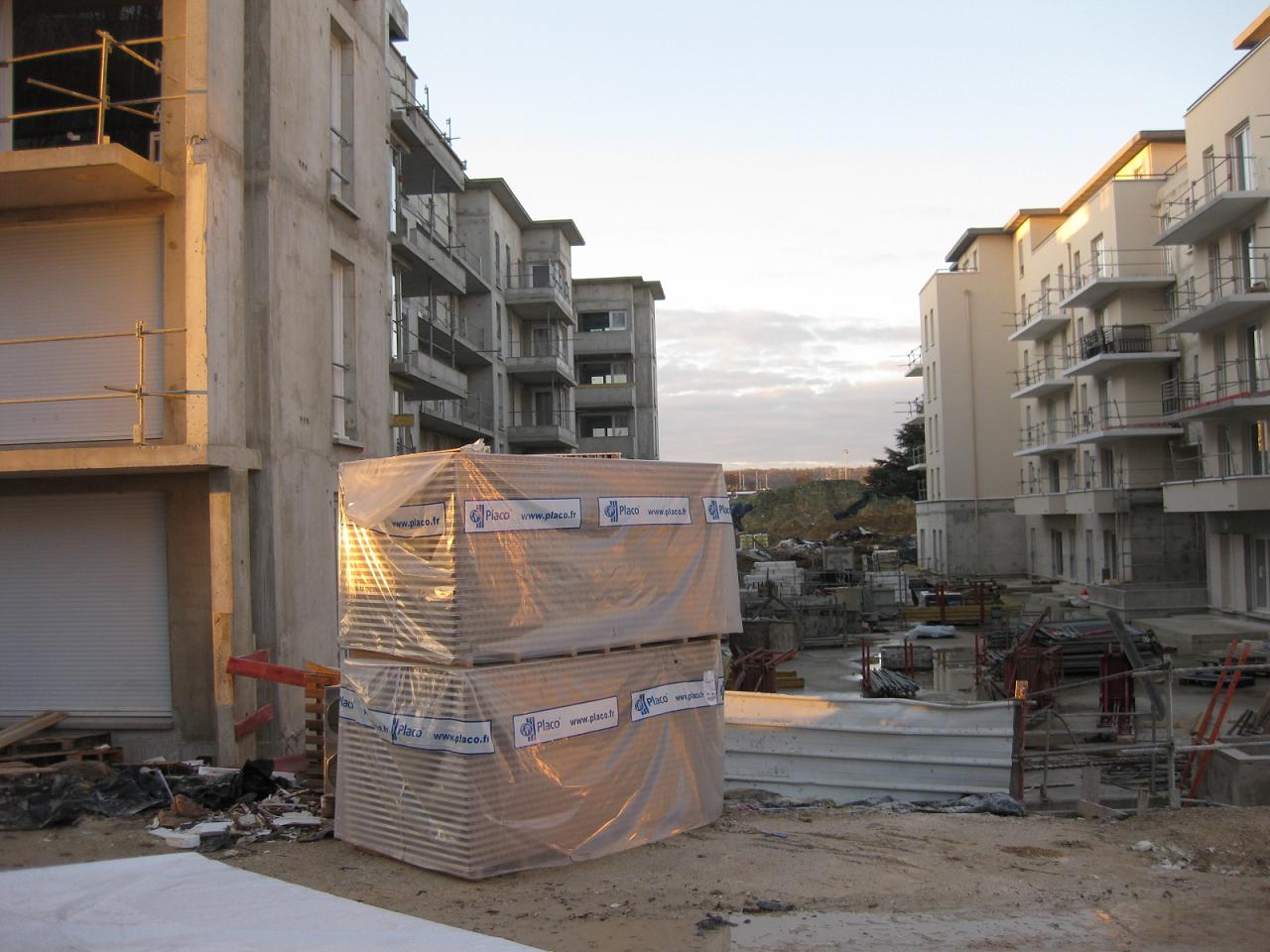Re: [PHOTO] Avancement du chantierJe viens de passer voir un peu le chantier ce matin. Pas de gros gros changements depuis les dernières photos de Stanislav, je ne vais donc pas envahir ce post avec des clichés quasi similaires. Juste une petite photo entre les bâtiment B et C pour vous montrer que l'isolation du parking est en cours et que le revêtement des murs exterieurs du RDC du B commence.