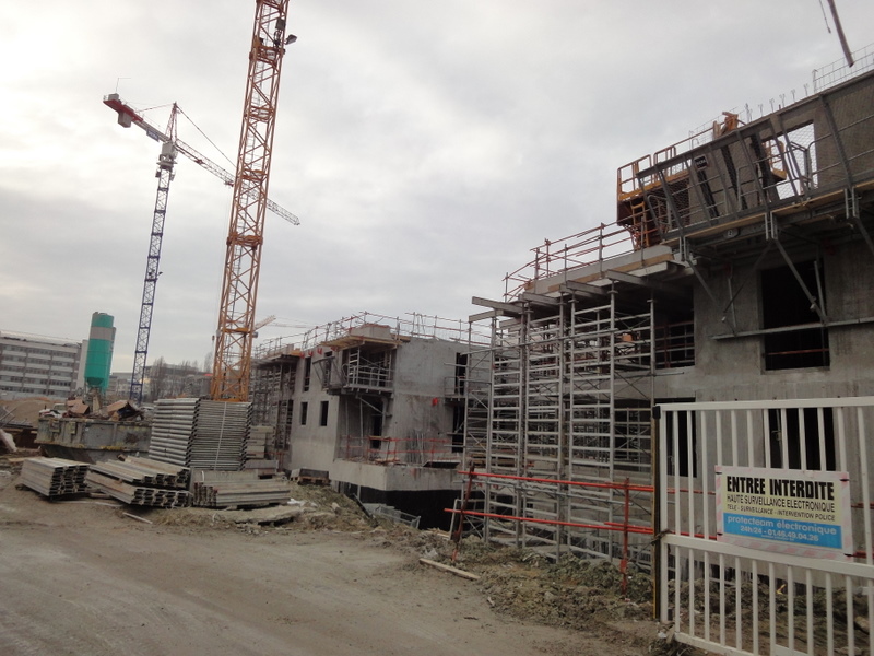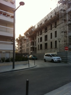 Voici les photos de ce matin. Sans les échafaudages on se rend s'imagine bien le bâtiment ! Ils ont aussi fait des essais des peintures sur la façade et j'ai cru voir par les fenêtres qu'ils avaient commencé les cloisons, mais il semble y avoir un problème au niveau des fenêtres il y a pas mal d'endroit bâché.. Ce qui pourrait expliqué que l'on ai pas encore reçu les ordres de payement pour la mise hors d'eau et le cloisonnement. Nous sommes dans le bâtiment B, et pour l'instant nous n'avons eu aucune nouvelle de la visite cloisonnement et vous ? Apparemment pour le bâtiment à côté (Adélie) cela commencera courant juillet. ![]()