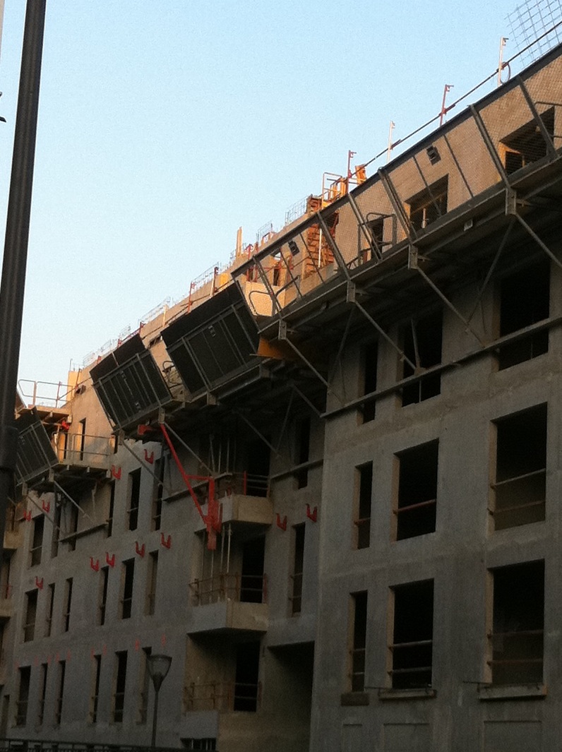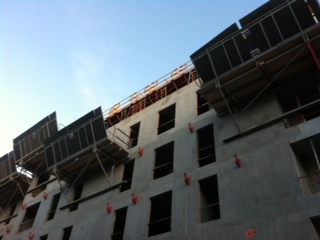 Voici les dernières images du chantier ! Le quatrième est achevé et environ la moitié des murs du 5ème et dernier étage sont montés. Est ce que l'un d'entre vous a des nouvelles ''de la visite de cloisons'' ? Sabine et Mathieu